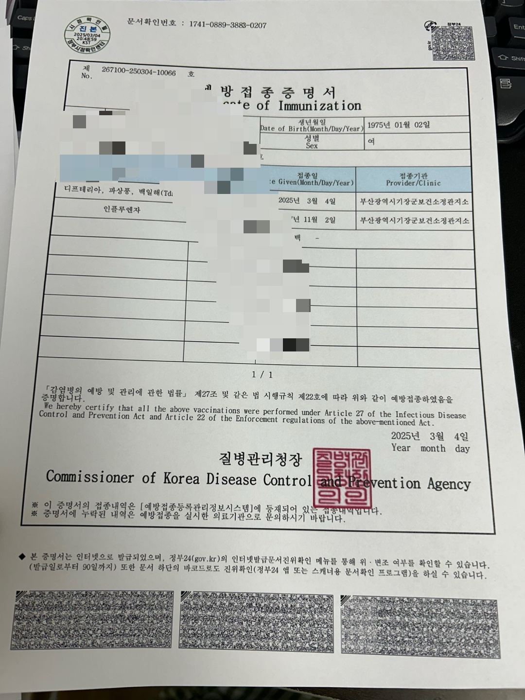 3. 예방접종증명서 발급 시 주의사항