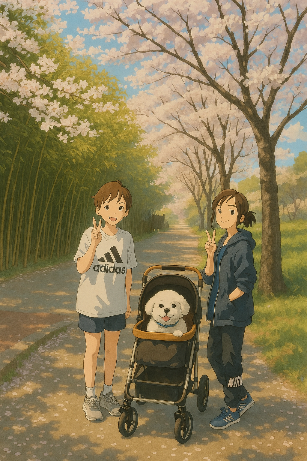 그분의 강아지와 함께 사진을 찍고 이렇게 지브리로 즐거운 추억을 남겼어요